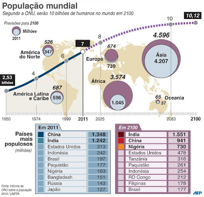 Segundo projeções das Nações Unidas, a população mundial deve chegar a oito bilhões em 2025 e a dez bilhões em 2083, mas esses números ainda podem variar dependendo de diversos fatores, como expectativa de vida, acesso a controle de natalidade e taxas de mortalidade infantil.